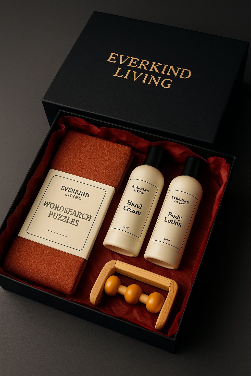 Everkind Living is Australia’s first subscription box designed with seniors in mind. Every month, a thoughtful mix of comfort items - from puzzles and teas to cozy essentials - delivered with love.